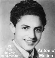 ANTONIO MOLINA DE HOCES, cantaor y cancionero payo, más conocido mundialmente en el arte del cante flamenco con su propio nombre artístico de ANTONIO MOLINA, nace en Málaga el día 9 de Marzo del año de 1928, y murió en Madrid el 18 de marzo de 1992. Fue enterrado en el cementerio de la Almudena de Madrid, donde miles de seguidores le acompañaron en su ultimo adiós. Antonio Molina era de una familia muy pobre y humilde, comienza a trabajar a la edad de diez años para ayudar a su familia, en diversos oficios, cuidador de piaras, repartidor de leche, etc. Se viene a Madrid a la edad de catorce años a trabajar y probar fortuna, en lo que buenamente se le presentara, hasta que se presenta en un concurso de Radio España, quedando finalista y siendo contratado para actuar en varias compañías.